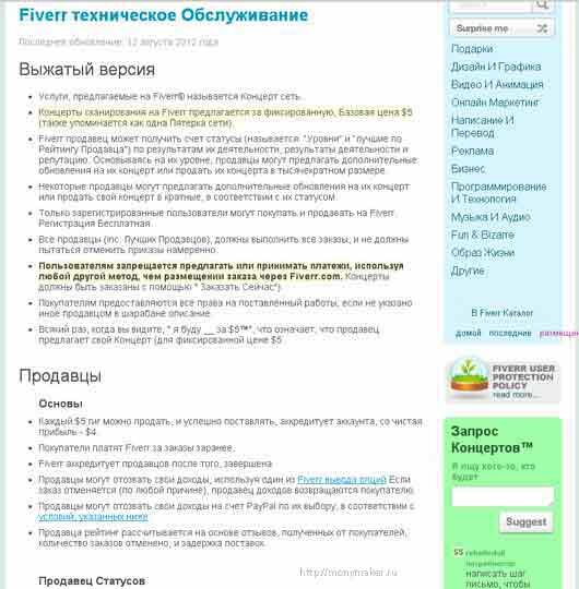 Вот я для вас сделал ещё несколько скриншотов по этой теме. Первый называется фивер техническое обслуживани е, где описаны все действия продавца и покупателя на сайте.